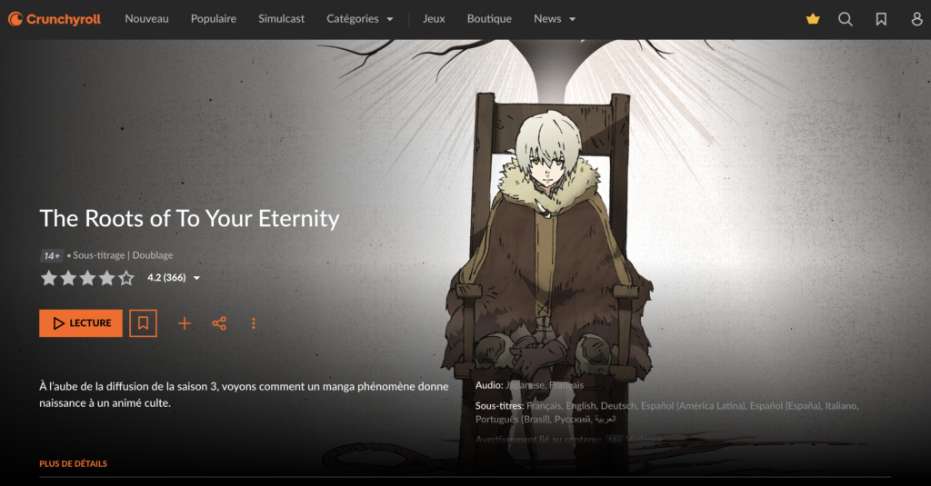 The Roots of To Your Eternity est une documentaire (52′) diffusé sur la plateforme Crunchyroll.